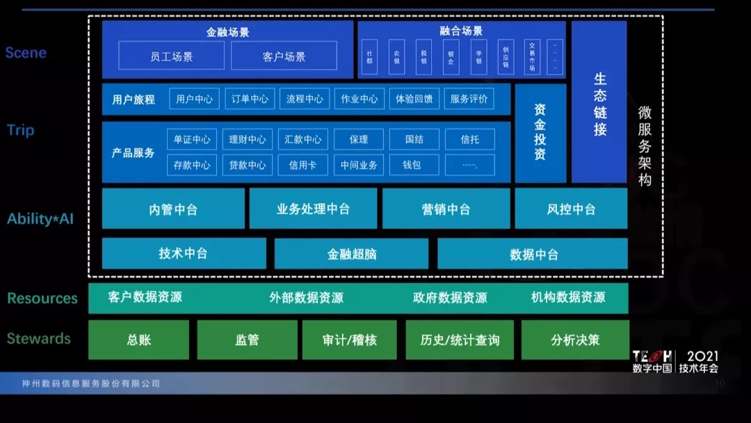 神州信息金融科技首席专家崔蕾表示:“未来银行架构ModelB@nk5.0,作为银行业的应用架构指引蓝图,以技术中台、数据中台以及金融超脑为支柱,围绕‘场景建设’‘旅程服务’‘能力输出’‘资源积累’‘组织管理’五个层次的业务发展述求提供清晰的数字化支撑能力,助力金融机构释放业务价值,为金融机构IT架构演进带来方向性指引”。